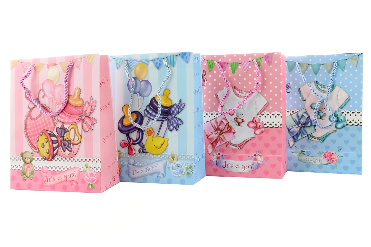 Diese stilvolle Geschenktüte mit 3D-Effekt ist perfekt für Geschenke zur Geburt. Dank des stabilen Papiers und der praktischen Maße passen kleine Erstausstattung, Babypflege oder Erinnerungsstücke bequem hinein.