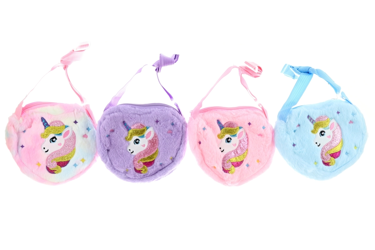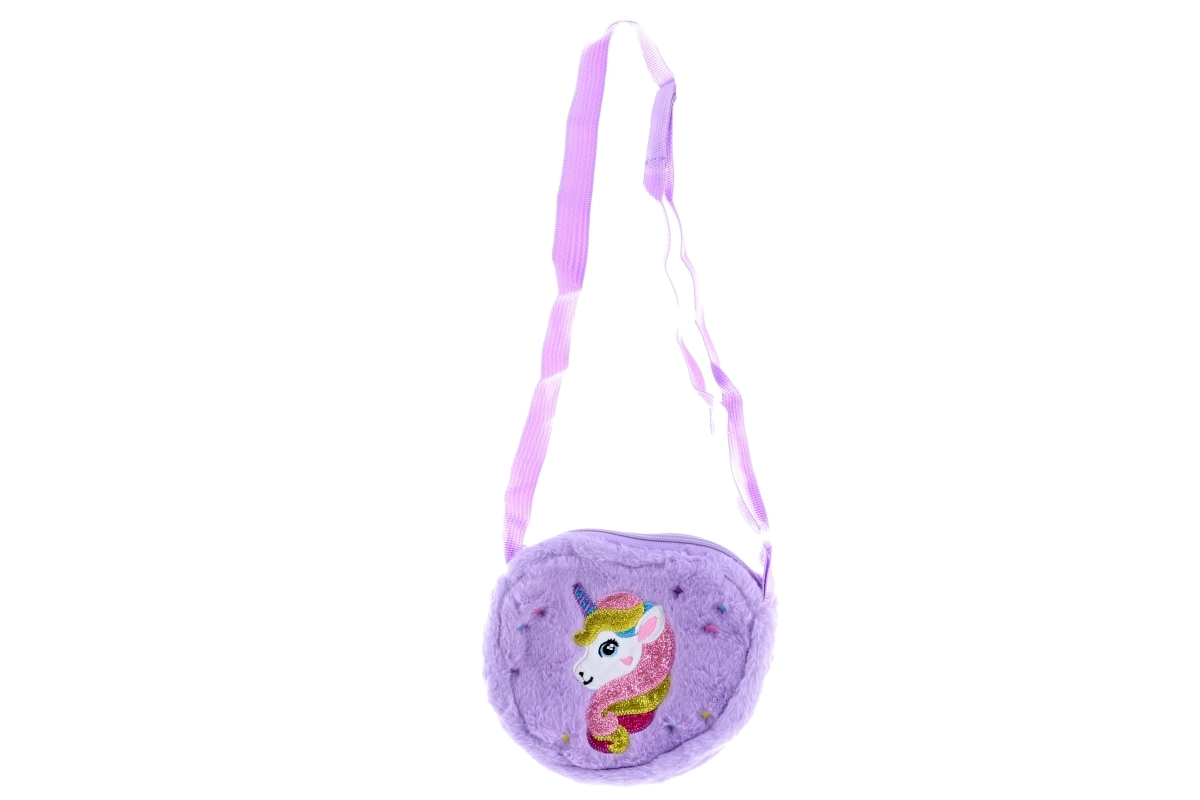 Niedliche plüschige Umhängetasche mit Einhorn-Motiv – ein echtes Highlight für kleine Fashionfans. Dank weichem, flauschigem Material, verstellbarem Trageriemen und praktischem Reißverschluss ideal für Kleinigkeiten, Spielzeug oder einen Snack. In mehreren Farben je nach Lagerverfügbarkeit erhältlich.