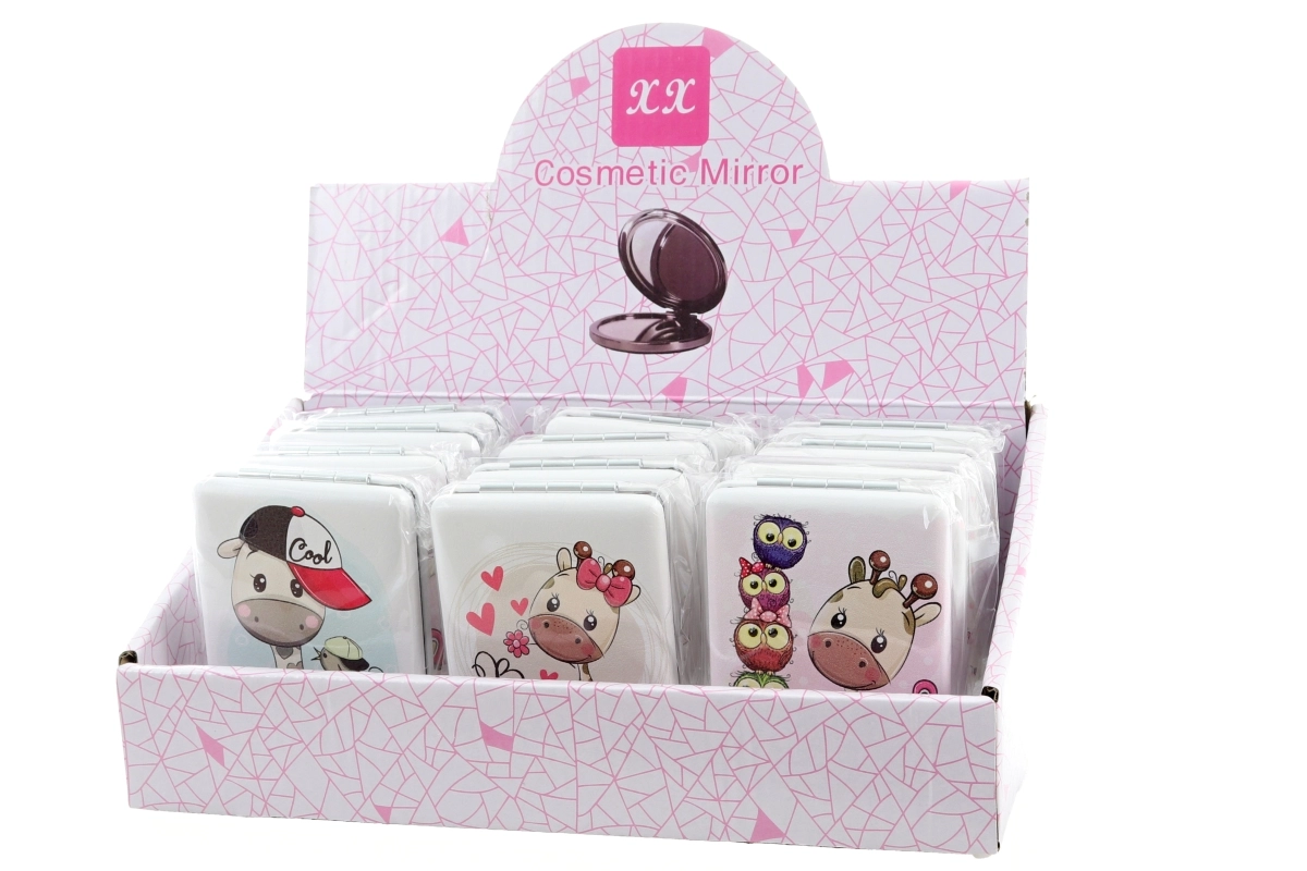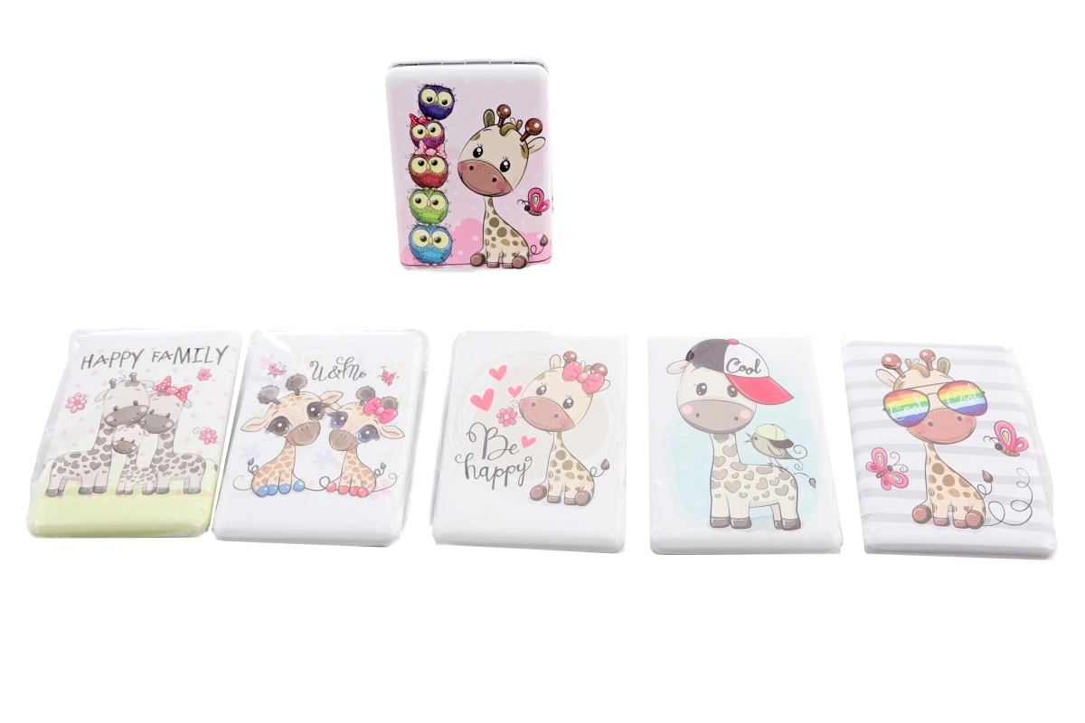 Der Spiegel hat kompakte Maße und passt bequem in Handtasche, Rucksack oder Tasche. Wir liefern ihn in mehreren attraktiven Varianten mit Giraffenmotiv, die wir je nach aktueller Lagerverfügbarkeit auswählen.