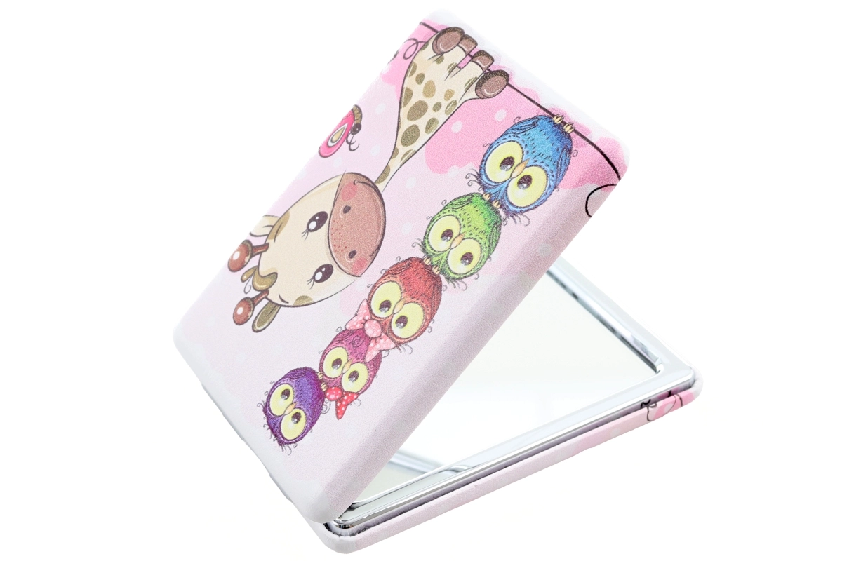 Praktischer rechteckiger Taschenspiegel mit verspieltem Giraffenmotiv, der mit seinem fröhlichen Design und seiner Funktionalität überzeugt. Dank der zwei Spiegel nach dem Öffnen ermöglicht er schnelle Korrekturen aus allen Blickwinkeln – ob im Büro, in der Schule oder unterwegs.