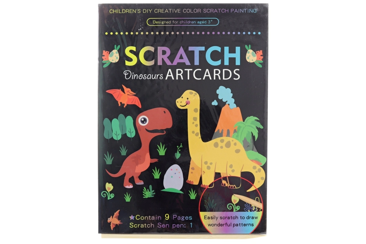 Entfesseln Sie Ihre Fantasie mit dem kreativen Kratzbild-Set mit Dinosauriermotiven. Nutzen Sie einfach das beiliegende Holzwerkzeug und legen Sie nach und nach farbige Schichten frei, die eindrucksvolle Illustrationen entstehen lassen. Dank der kompakten Maße eignet sich das Set für unterwegs, die Schule und zum Kreativsein zu Hause.
