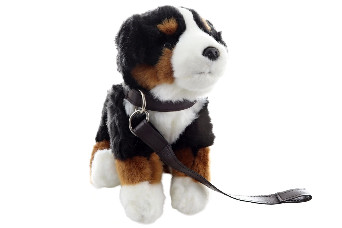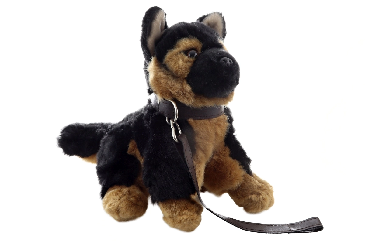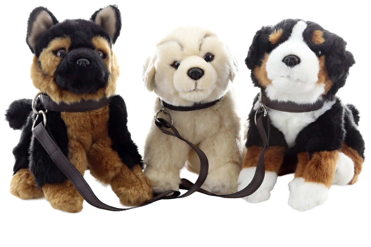 Jeder Hund hat realistische Details (aufgestickte Augen und Nase), angenehmen kurzen Plüsch und ein strapazierfähiges Halsband mit Leine für das Spaziergangs-Rollenspiel. Auswahl aus 3 Rassen je nach aktueller Verfügbarkeit.