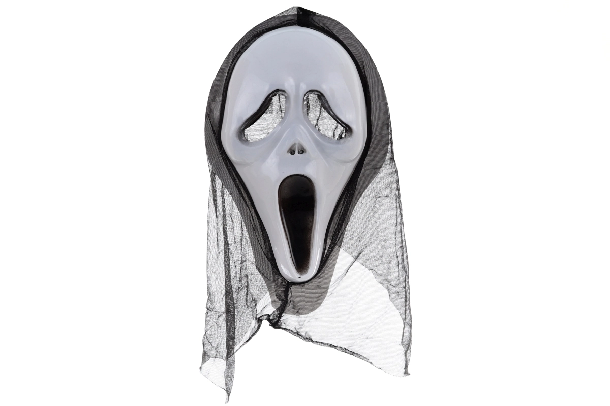 Schaurig-stylische Karnevalsmaske, inspiriert vom kultigen Scream-Motiv, ideal für jede Party und Halloween. Leichte Konstruktion aus Kunststoff und Polyester sorgt für angenehmen Tragekomfort und einfaches Aufsetzen über den Kopf. Perfektes Accessoire für Kinder ab 3 Jahren. Leichtes Material, einfaches Aufsetzen, authentischer Look.