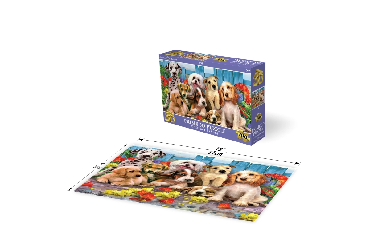 Genießen Sie Spaß mit niedlichen Welpen dank des 3D-lentikulären Effekts auf einem kompakten Puzzle mit 100 Teilen. Ideal für Kinder ab 5 Jahren, fördert Feinmotorik, Geduld und räumliche Vorstellungskraft. Das fertige Bild misst 31 × 23 cm – perfekt für schnelles Puzzeln und wiederholten Spielspaß.