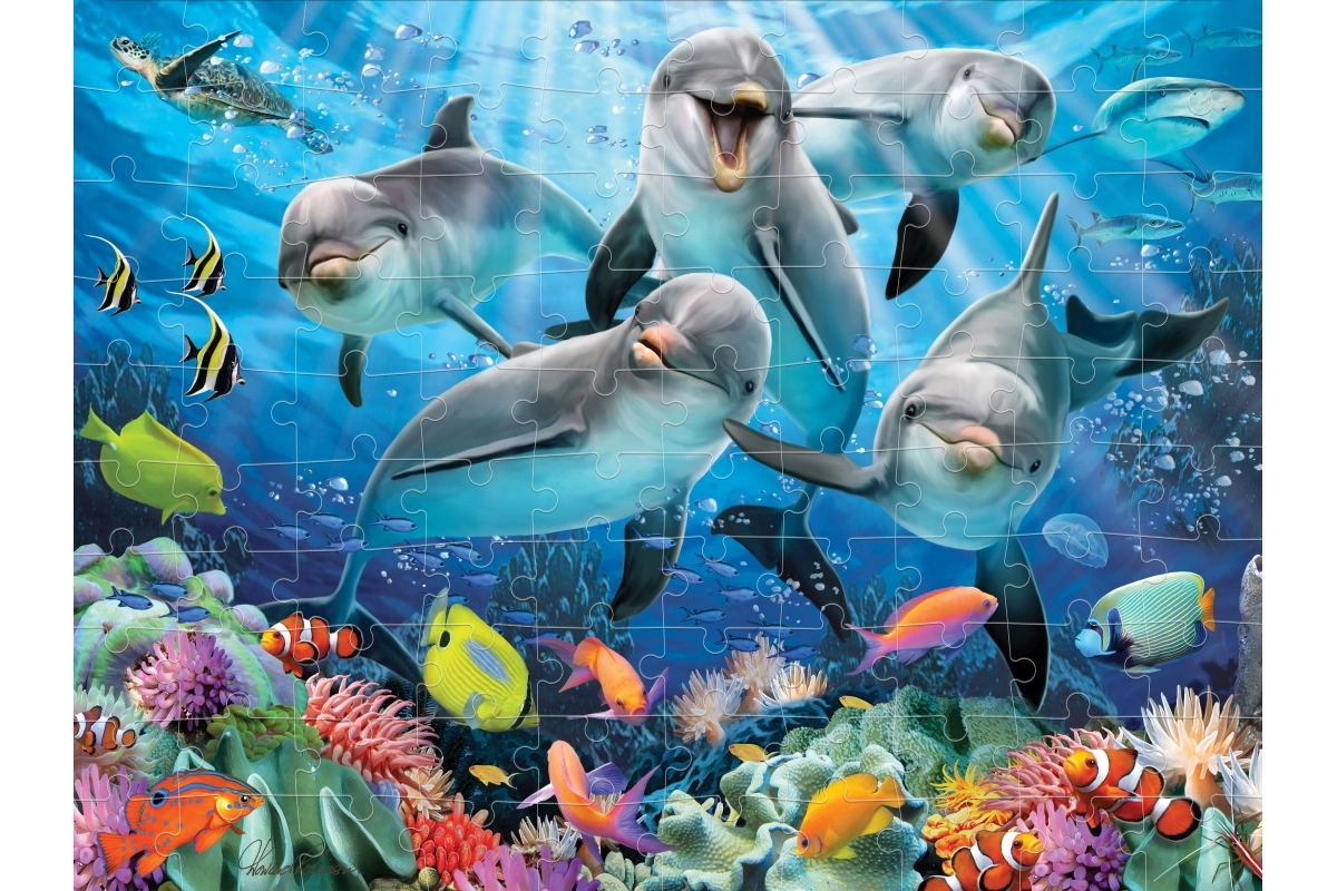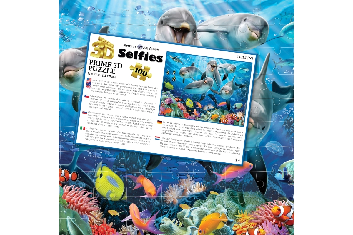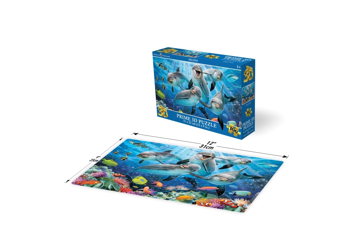 Entdecken Sie eine Beschäftigung, die Geduld, Konzentration und Feinmotorik fördert. Dieses 3D-Puzzle mit Delfinmotiv bietet eine farbenfrohe Unterwasserszene, die dank des lENTIKULARen 3D-Effekts plastisch und dynamisch wirkt. Das fertige Bild hat das kompakte Maß 31 × 23 cm und eignet sich hervorragend zum Ausstellen im Kinderzimmer.