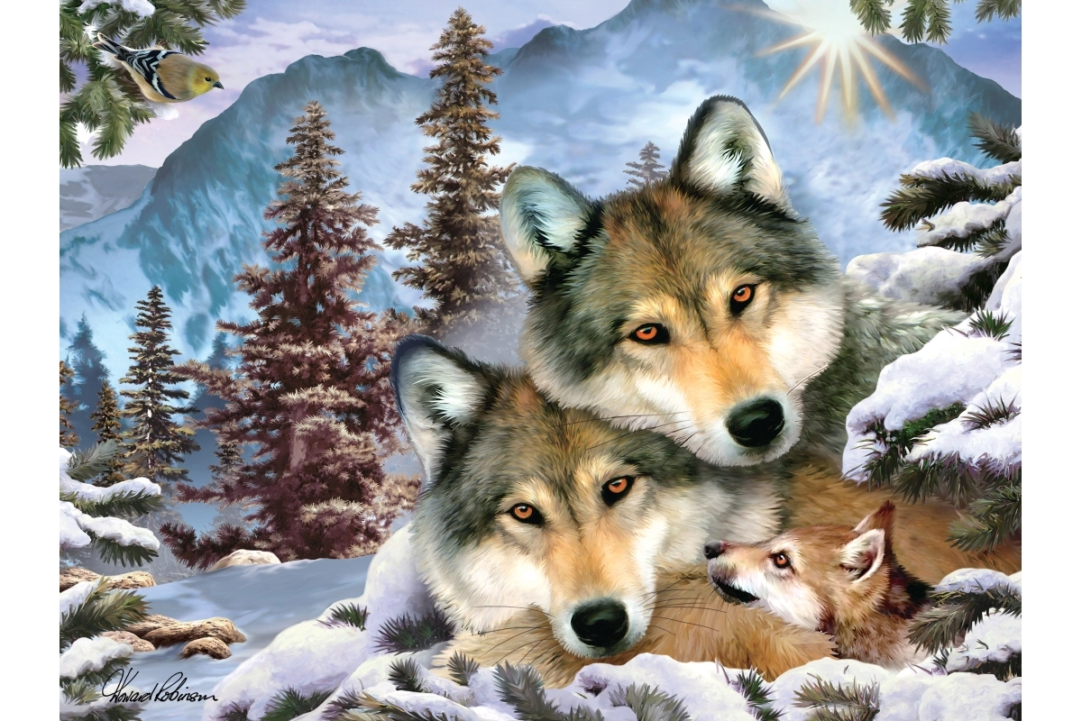 Die lentikulare Technologie erzeugt einen realistischen räumlichen Eindruck, durch den die Wölfe vor Ihren Augen lebendig werden.