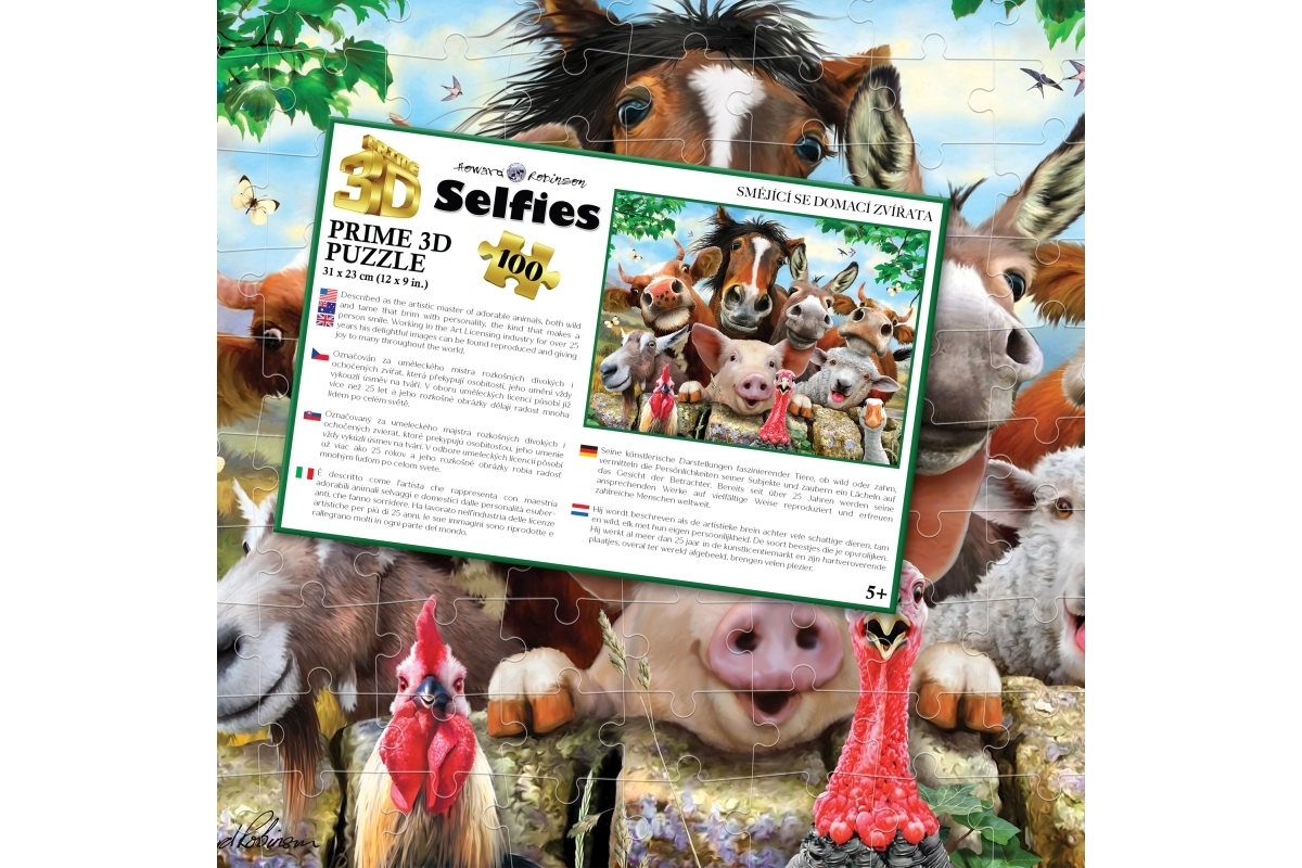 Entdecken Sie den Puzzlespaß mit dem 3D-Puzzle Lachende Haustiere. Dank 100 stabilen Teilen entwickeln Kinder Feinmotorik, Geduld und räumliches Vorstellungsvermögen. Das fertige Bild mit den Maßen 31 × 23 cm ist ideal, um es im Kinderzimmer auszustellen.