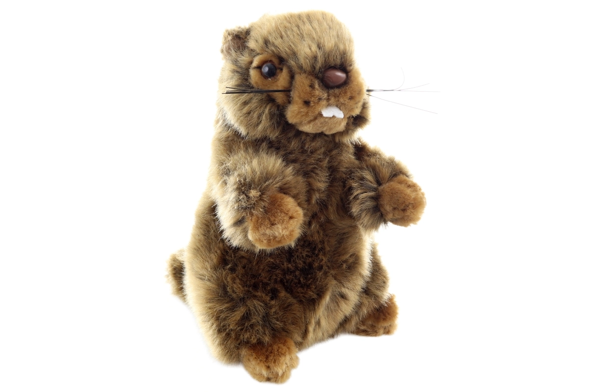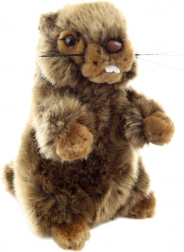 Niedliches Plüsch-Murmeltier mit einer Höhe von 18 cm, hergestellt aus umweltfreundlichen Materialien – ideal zum Kuscheln und für kreatives Spielen. Es hat superweiches Fell, sicher angenähte Details und ist geeignet ab 0+ Monaten.