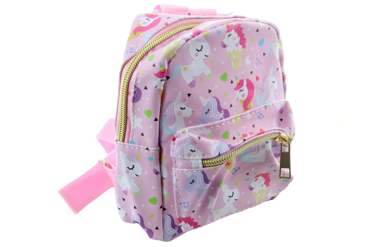 Dieser niedliche Mini-Rucksack mit Einhornmotiv begeistert Liebhaber origineller Accessoires. Die Oberfläche aus strapazierfähigem Kunstleder ist pflegeleicht und verleiht dem Rucksack einen eleganten Look. Dank der zwei separaten Reißverschlusstaschen ordnen Sie mühelos alle kleinen Dinge, die Sie griffbereit haben möchten.
