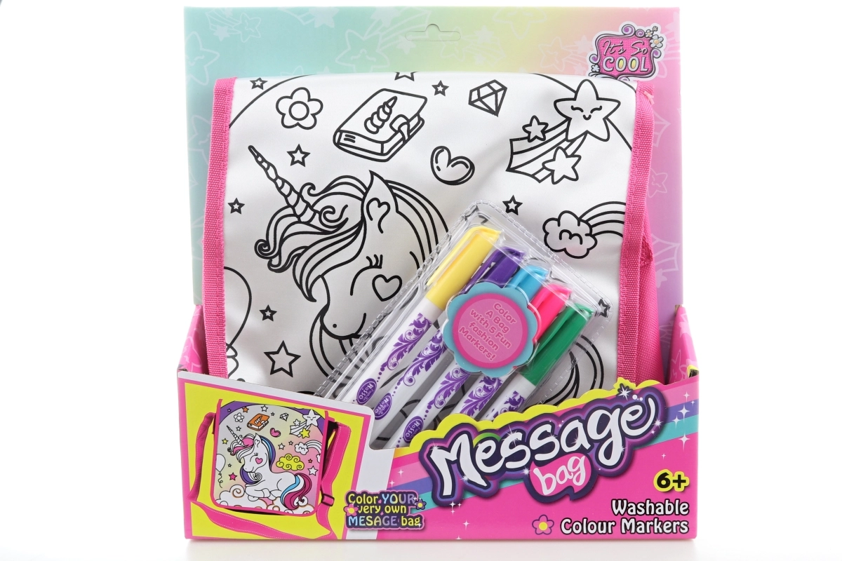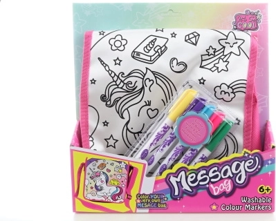 Kreative Mal-Tasche mit niedlichem Einhornmotiv – ein Vergnügen für jedes kleine, kreative Kind. Inklusive verstellbarem rosa Schulterriemen und einem Set aus 5 Farben zum sofortigen Ausmalen. Die Tasche hat einen praktischen Klettverschluss und ist ideal für Kleinigkeiten und unterwegs. Fördert die Kreativität, einfach zu verwenden und spaßig für Kinder ab 3 Jahren.