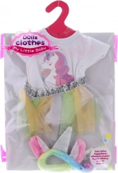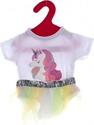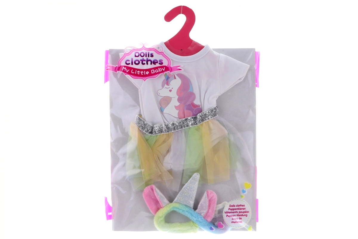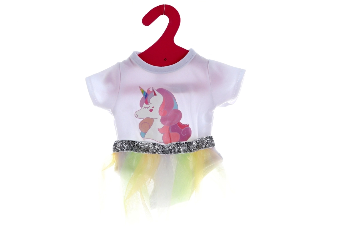 Dieses zauberhafte Puppenkleidungs-Set bietet alles, was kleine Fashion-Fans für ein märchenhaftes Styling brauchen. Der Body mit Einhorn-Print, der fluffige Tutu-Rock mit glitzerndem Bund und das weiche Haarband mit Horn ergeben ein perfektes Outfit für jeden Anlass.