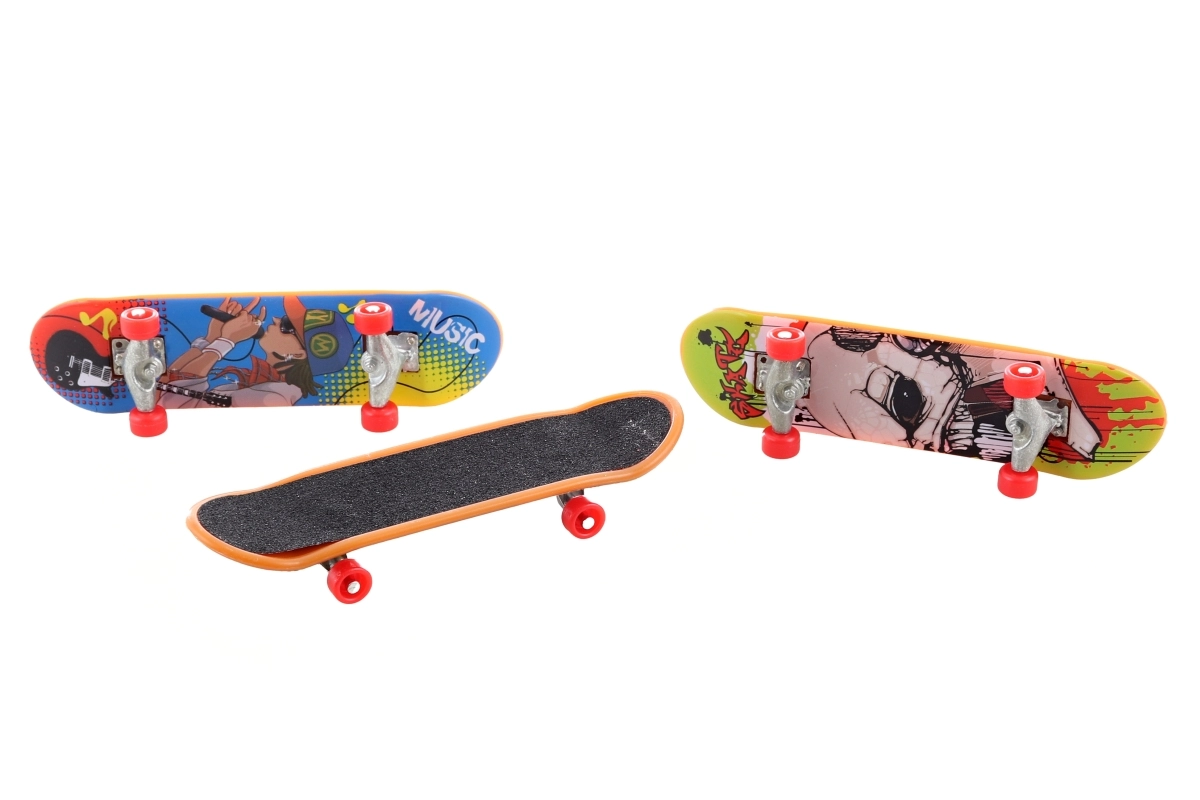 Entdecken Sie die Welt des Fingerboardings mit einem Set aus drei Finger-Skateboards, das Spaß, Stil und Langlebigkeit vereint. Dank der kompakten Größe sind sie ideal für unterwegs, die Schule und zu Hause und bieten viele Möglichkeiten, Tricks zu trainieren und mit Freunden zu konkurrieren.