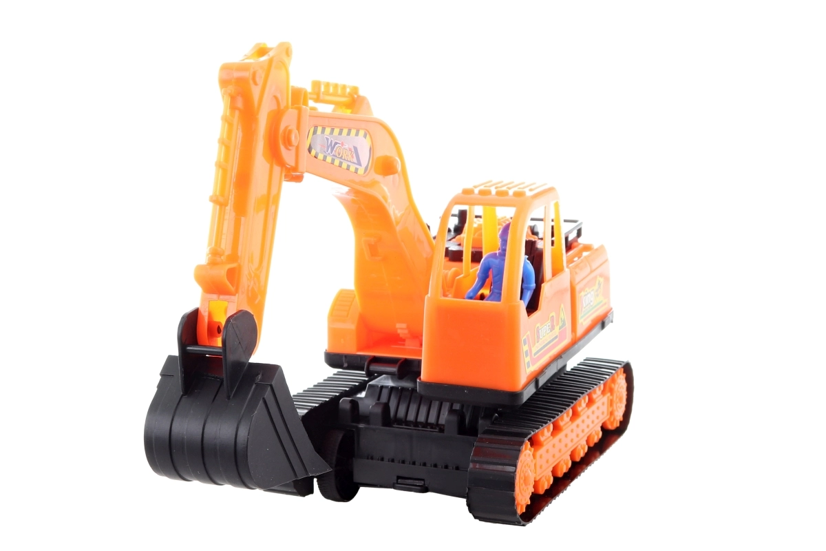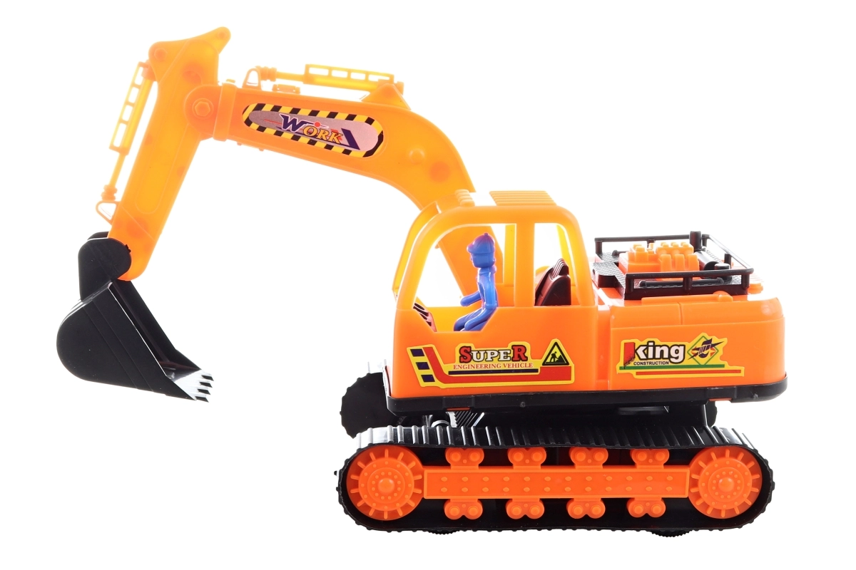 Dieser Kunststoff-Kettenbagger bietet Kindern viel Spaß beim Bauen und Spielen auf der Baustelle. Obwohl die Ketten nicht funktionsfähig sind, bewegt sich das Fahrzeug dank freilaufender Räder mühelos und ist somit ideal für eine geschmeidige Fahrt auf verschiedenen Untergründen. Die kompakte Größe und das geringe Gewicht erleichtern auch kleineren Kindern die Handhabung.