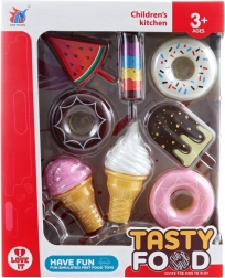 Dieses Süßigkeiten-Set ist ideal für Kinderküchen, Spielzimmer und das Spielen von Laden. Dank des leichten und strapazierfähigen Kunststoffs können Kinder sicher ihre Fantasie, Feinmotorik und sozialen Fähigkeiten beim gemeinsamen Spiel entwickeln.