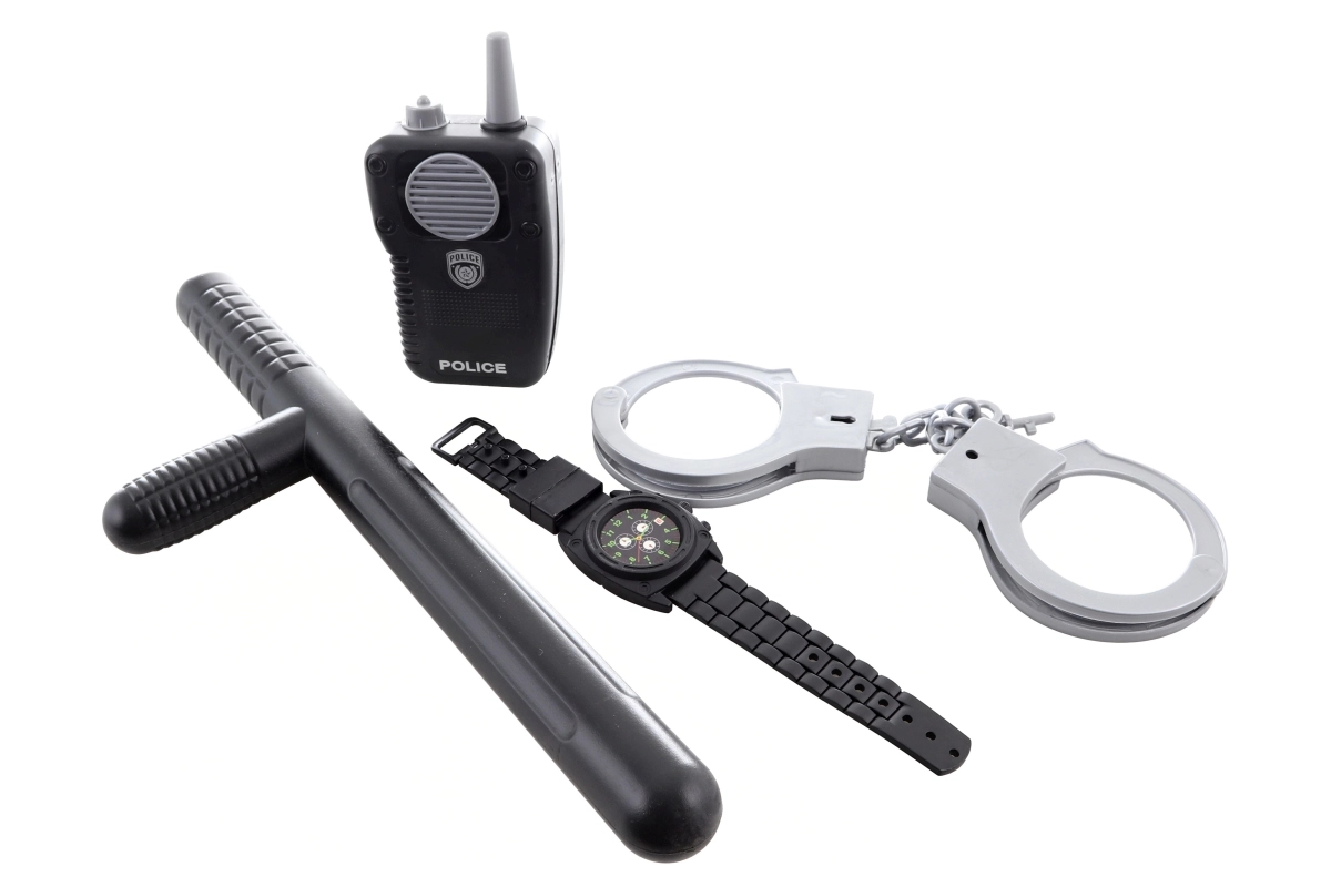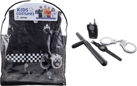 Das Polizistenkostüm für Kinder mit Zubehör bringt fantasievollen Spielspaß voller Action. Dank realistischer Elemente wie Funkgerät, Handschellen und Schlagstock genießen Kinder authentische Rollenspiel-Szenarien. Die leichte Polyesterweste ist bequem zu tragen und lässt sich leicht anziehen.