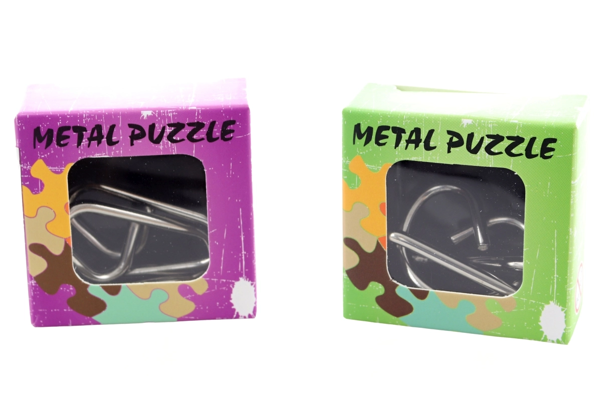 Klein, aber macht süchtig – ein Metall-Geduldsspiel, das Ihre Geduld und Ihr logisches Denken auf die Probe stellt. Jedes Stück ist in einer Geschenkbox mit Sichtfenster verpackt und eignet sich daher hervorragend als kleines Präsent. Dank der stabilen Metallkonstruktion ist das Puzzle robust und für wiederholtes Zusammen- und Auseinanderbauen gemacht.