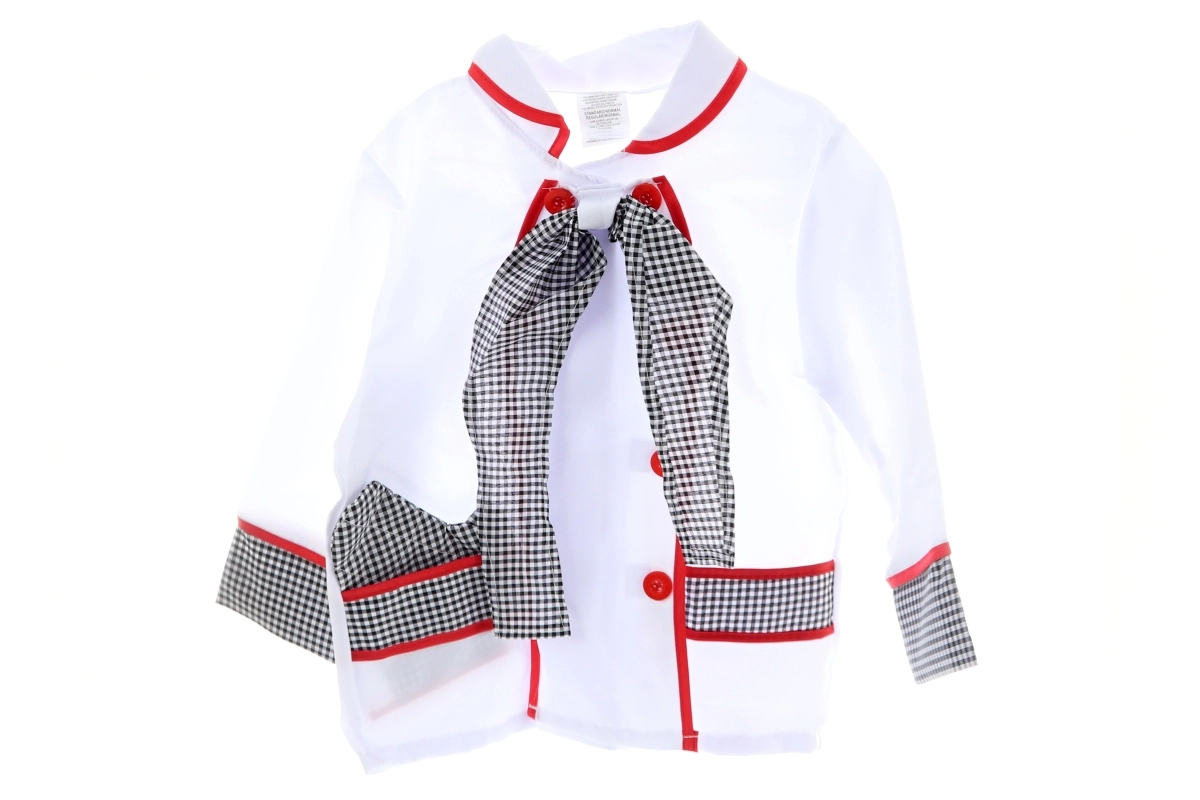 Das Kinder-Kochkostüm fördert Fantasie, Kreativität und Feinmotorik. Das Set enthält alles für realistisches Spielkochen – von der stylischen Jacke mit Knöpfen bis zu praktischen Accessoires inklusive Ofenhandschuh, Mütze und Kunststoff-Utensilien.