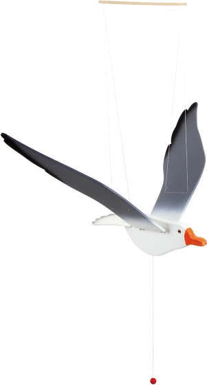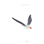 Durch Ziehen an der Schnur mit einem Perlenanhänger können Sie ihre Flügel in Bewegung setzen und den Flug der Möwe simulieren.