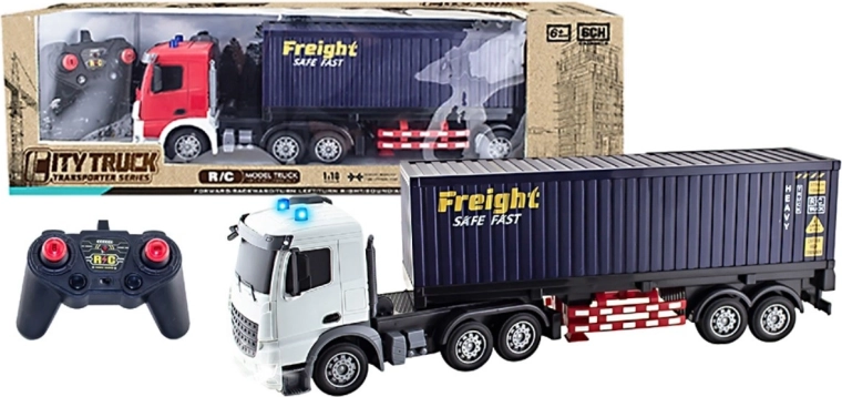Das Modell im Maßstab 1:18 verfügt über eine einstellbare Spur der Räder für präziseres Lenken sowie bewegliche Elemente des Aufliegers, die das Spiel bereichern. Das Fahrzeug wird von der mitgelieferten 3,7-V-Akkubatterie betrieben, die Fernsteuerung benötigt 2× AA-Batterien (nicht im Lieferumfang enthalten).