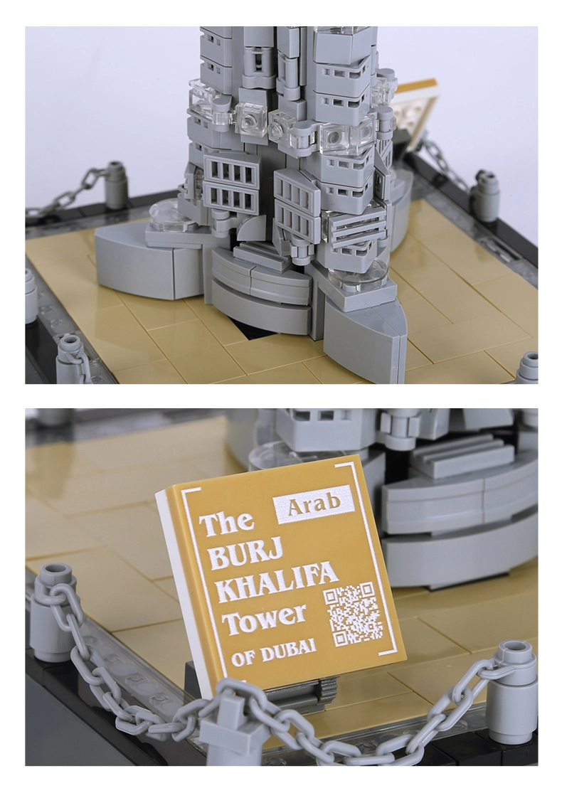 Dieses Bauset aus der Gebäudereihe ermöglicht den Bau des berühmten Wahrzeichens von Dubai – BURJ KHALIFA. Aus 555 Elementen entsteht ein stabiler und realistischer Modellbau, der sowohl im Regal als auch auf dem Schreibtisch beeindruckt. Eine einfache bebilderte Anleitung erleichtert das schrittweise Zusammenbauen.