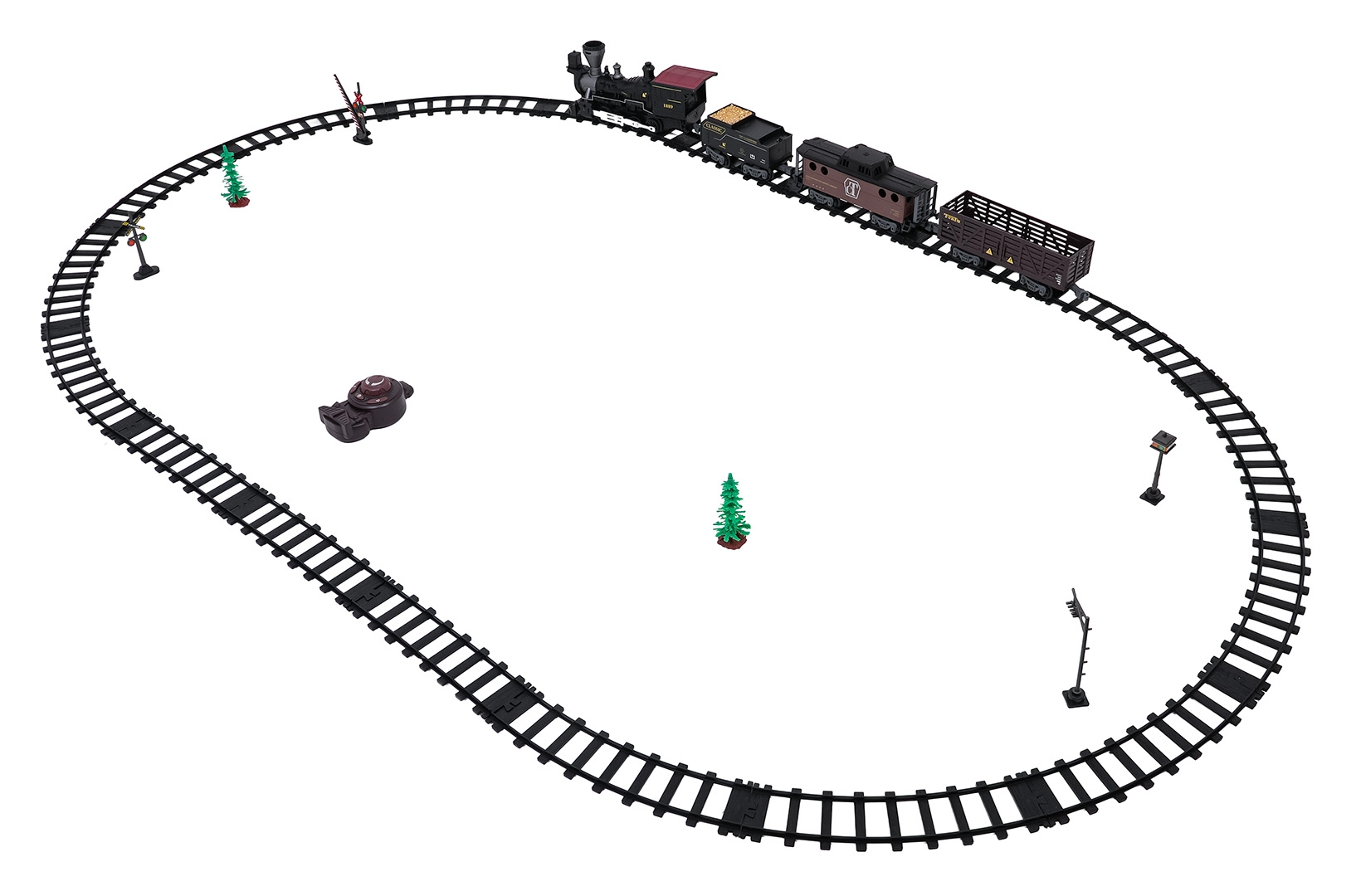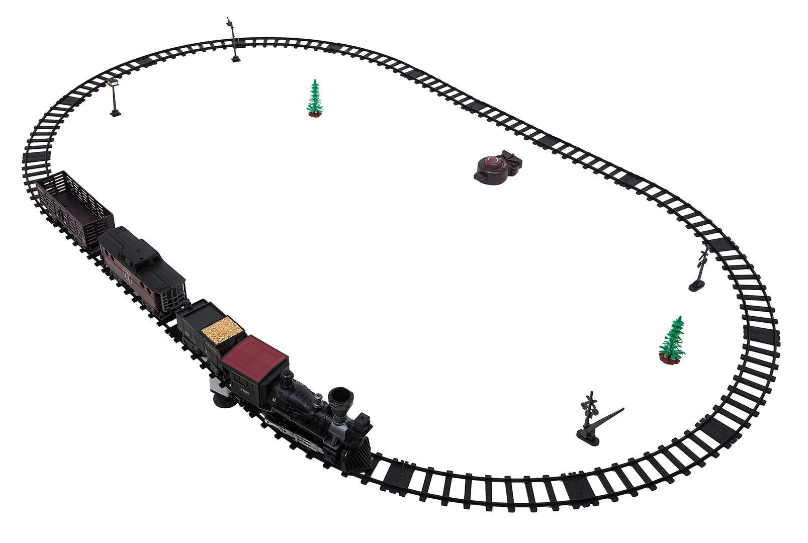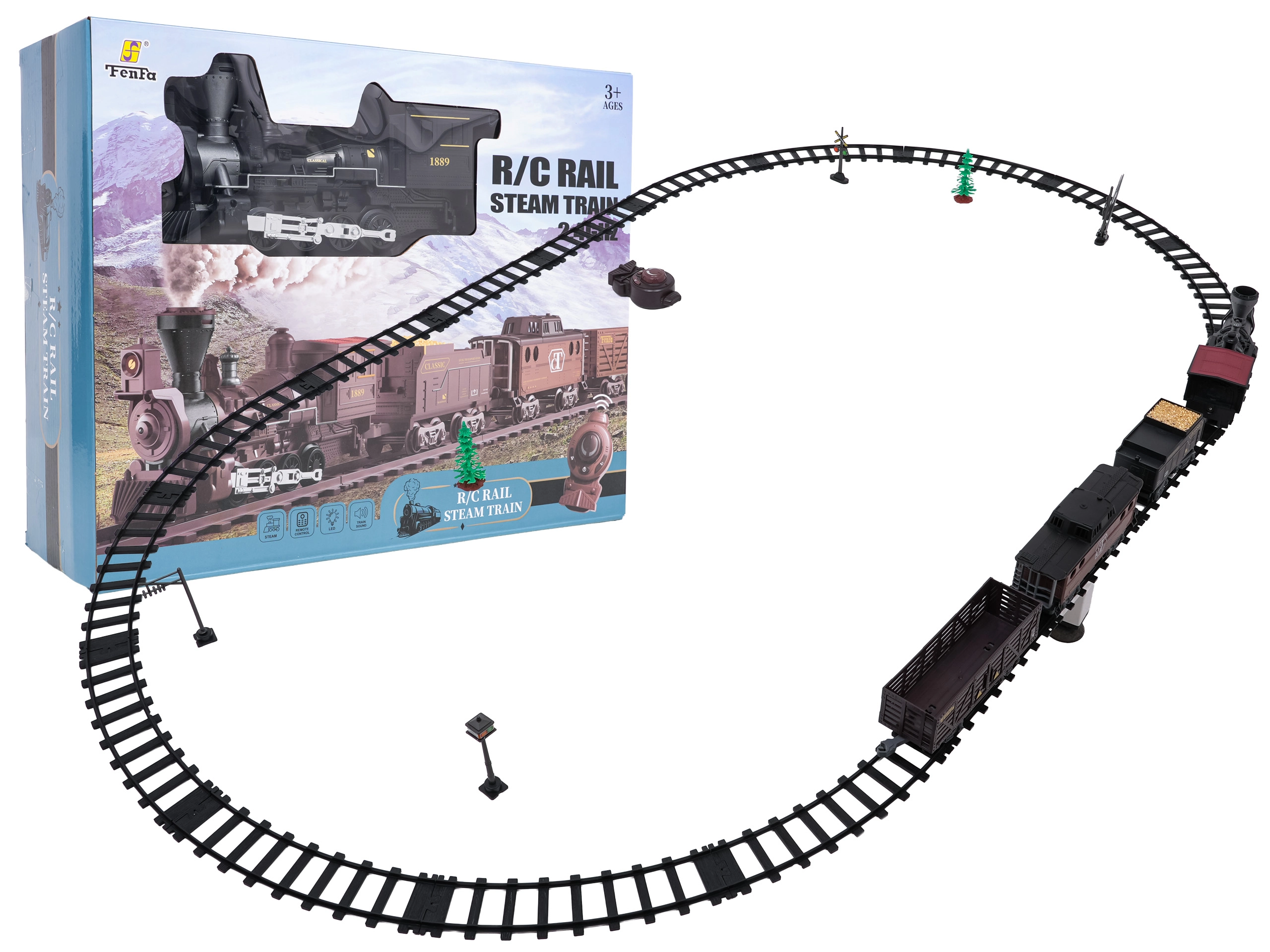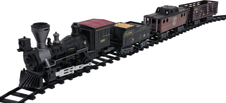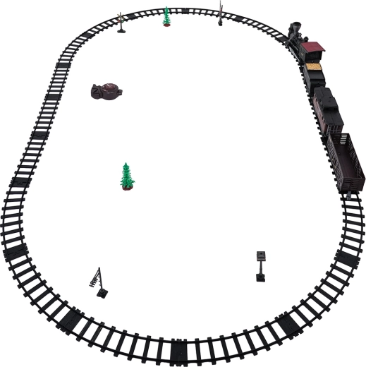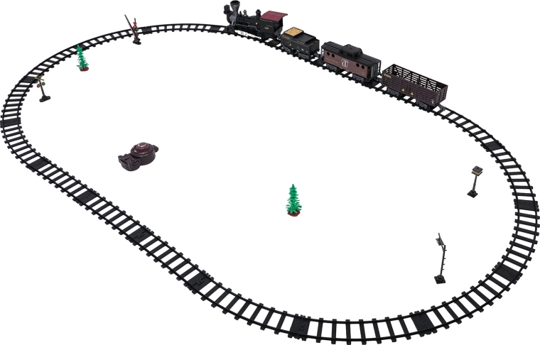 Die Fernsteuerung mit 2,4 GHz sorgt für eine stabile Verbindung ohne Störungen. So wechseln Sie mühelos die Richtung (vorwärts/rückwärts), stoppen den Zug oder aktivieren den Dampf per Knopfdruck. Das Set enthält eine Lokomotive, einen Personenwagen, einen Tender mit Kohle sowie Zubehör für eine komfortable Inbetriebnahme.