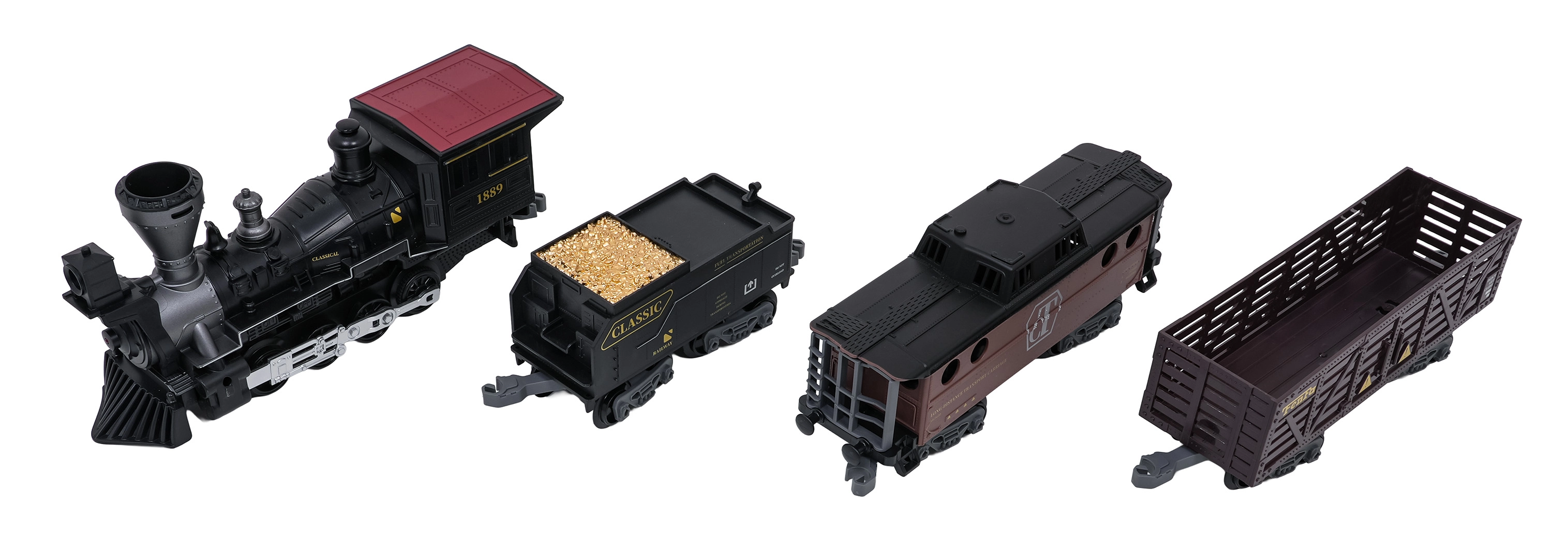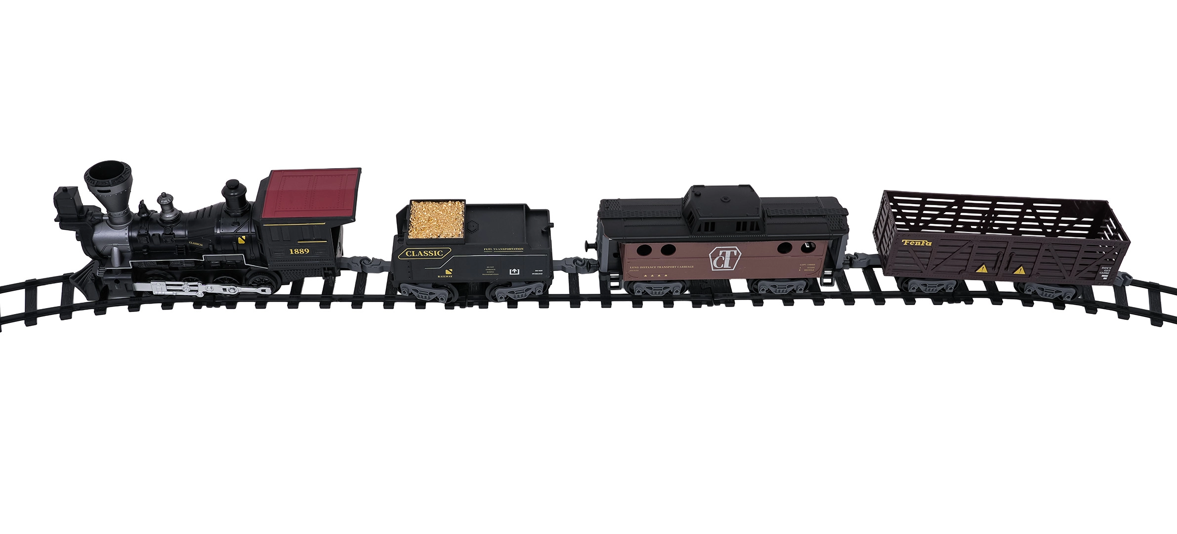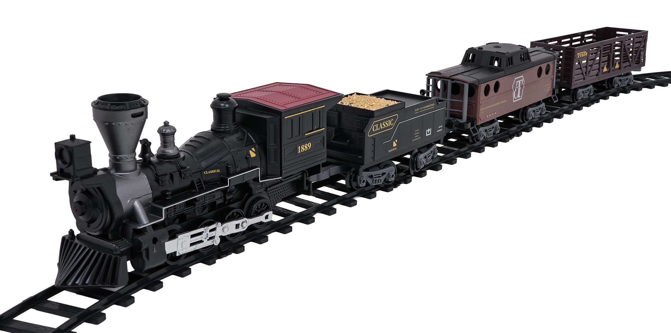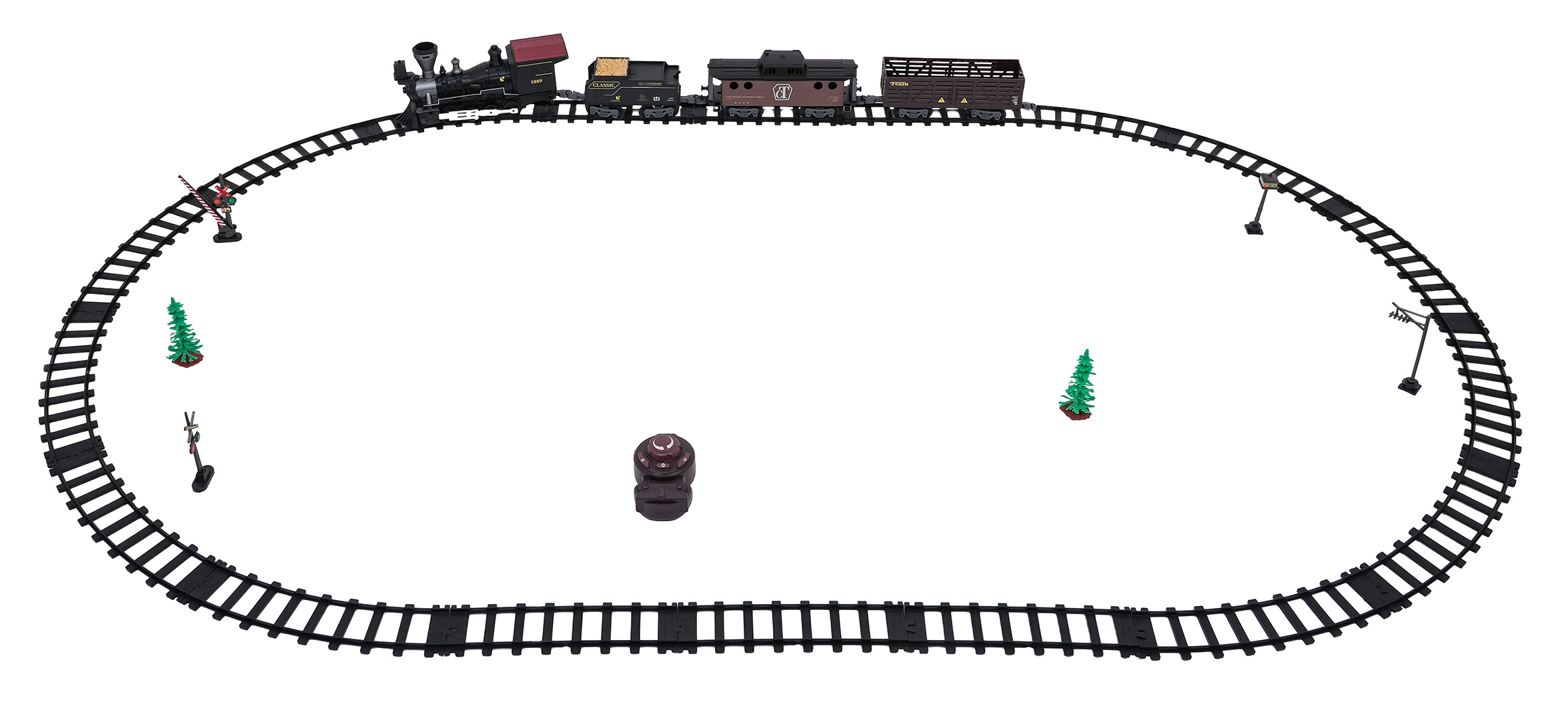 Die Fernsteuerung mit 2,4 GHz sorgt für eine stabile Verbindung ohne Störungen. So wechseln Sie mühelos die Richtung (vorwärts/rückwärts), stoppen den Zug oder aktivieren den Dampf per Knopfdruck. Das Set enthält eine Lokomotive, einen Personenwagen, einen Tender mit Kohle sowie Zubehör für eine komfortable Inbetriebnahme.