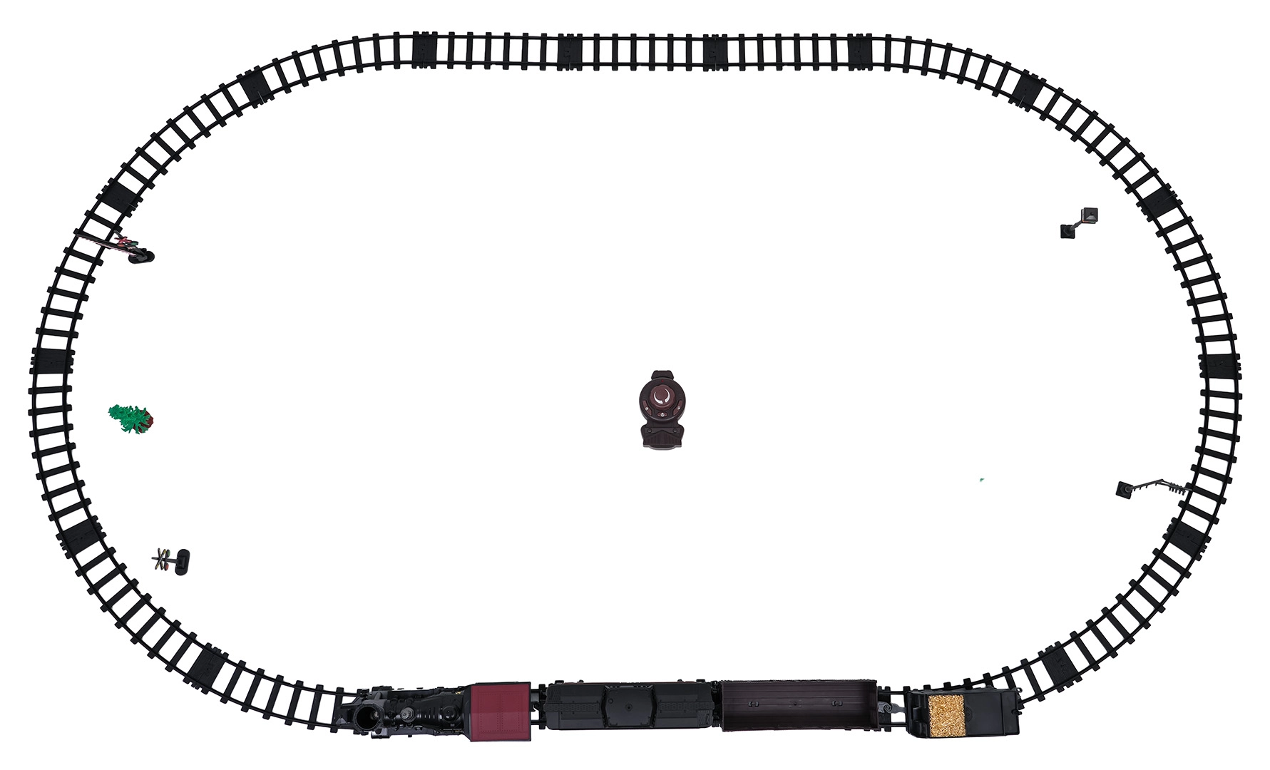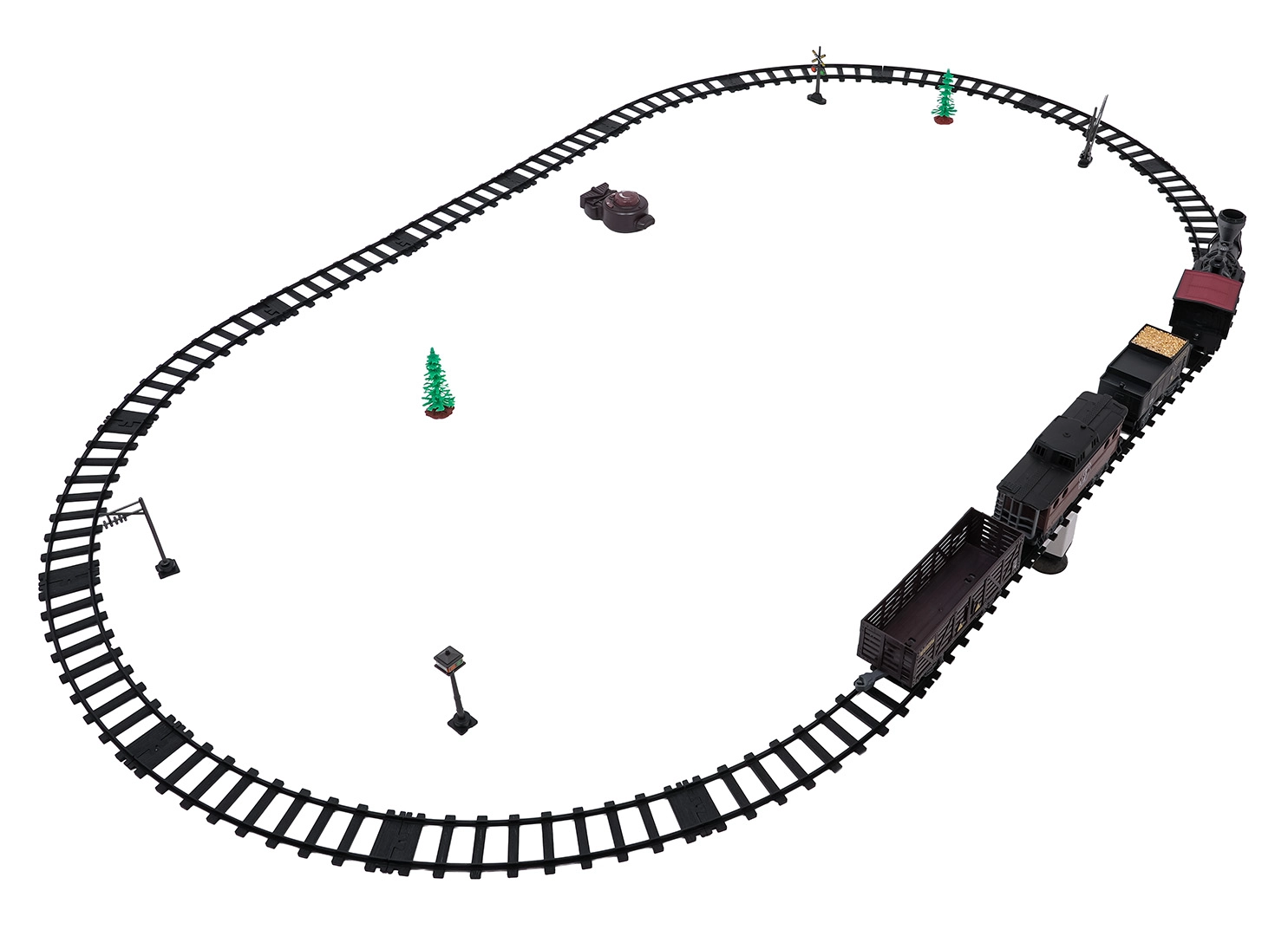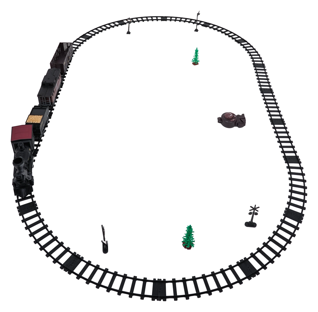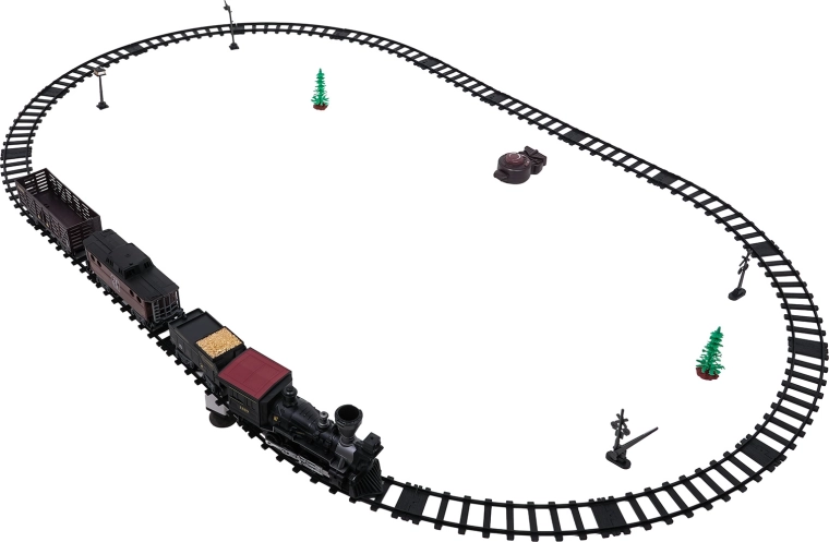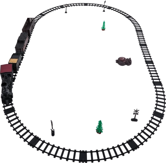 Modulare Kunststoffschienen rasten fest ineinander und bilden ein großes Oval für eine reibungslose Zugfahrt.