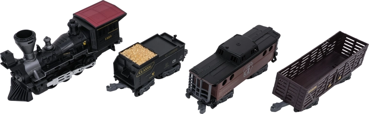 Der stilvolle Dampfzug mit vielen Details begeistert kleine und große Eisenbahnfans. Nach dem Befüllen mit Wasser erzeugt die Lok einen echten Raucheffekt, vorne leuchtet ein Scheinwerfer und während der Fahrt erklingen authentische Geräusche, die bei Bedarf ausgeschaltet werden können. Die robusten Kunststoffschienen rasten sicher ein und sind für Kinder ab 3 Jahren geeignet.