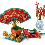 Holen Sie sich die Atmosphäre der Frühlingsfeier nach Hause mit dem detailreichen LEGO Spring Festival „Wohlstand“. Diese Sammlerdekoration präsentiert ikonische Motive, die Liebe, Gesundheit, Wohlstand und Freude symbolisieren. Enthalten sind ein eleganter Fächer mit zwei Elstern – Boten guter Dinge, die im Paar kommen – sowie ein reiches Arrangement mit roten Früchten, Persimonen, Goldbarren und einer Schriftrolle mit dem chinesischen Zeichen für „Frühling“.