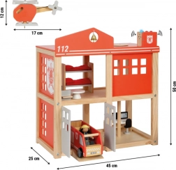 Die große Feuerwehrstation aus Holz von Small foot ist ein durchdachtes Spielset für kleine Helden. Sie bietet zwei Etagen mit Leitstand, Ruhebereich und Werkstatt, Platz zum Parken des Fahrzeugs sowie eine Landeplattform für den Hubschrauber. Die offene Konstruktion und die großen Türen gewährleisten bequemen Zugang in alle Bereiche der Station.