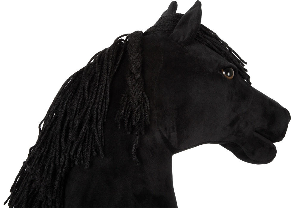 Dank der robusten Stange mit Gewinde lässt es sich leicht abschrauben und zum Training oder Turnier mitnehmen. Die Mähne kann gekämmt, gestylt und geflochten werden – Styling ist somit Teil des Spielspaßes. Ideal für den Trend-Sport Hobby Horsing sowie zur Förderung der Feinmotorik, Koordination und Fantasie.