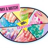 Mischen, ziehen und drücken. Verschiedene Farben, Glitzer und Perlen erzeugen faszinierende Effekte und ein reiches haptisches Erlebnis.
