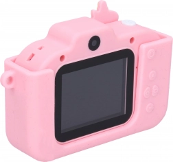 Die Kamera verfügt über ein übersichtliches 2,0"-Display, eine einfache Bedienung und viel Ausstattung für Spaß: Selbstauslöser 10/5/2 s, verschiedene Rahmen, Filter und lustige Animationen, Verformungs-Effekte sowie integrierte Spiele und MP3-Player. Die robuste Silikonhülle im Einhorn-Look schützt das Gerät im Alltag.