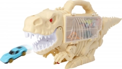 Heben Sie den Dinosaurierschwanz an und verwandeln Sie ihn in eine Rampe. Das Auto fährt durch den Körper des Dinosauriers und kommt unter dem Kopf für eine dynamische Fahrt heraus.