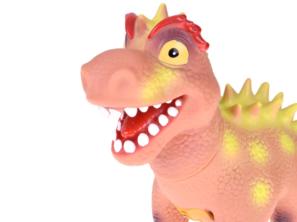 Entdecken Sie die lustige Dinosaurierfigur mit Soundeffekten, die zu stundenlangem kreativem Spiel inspiriert. Der Körper besteht aus hartem Gummi mit einer detaillierten Textur, die an Dinosaurierhaut erinnert; markante Zähne und Rückenstacheln unterstreichen den realistischen Look. Ein Streicheln unter dem Kinn reicht, und es ertönt ein mächtiges Brüllen.
