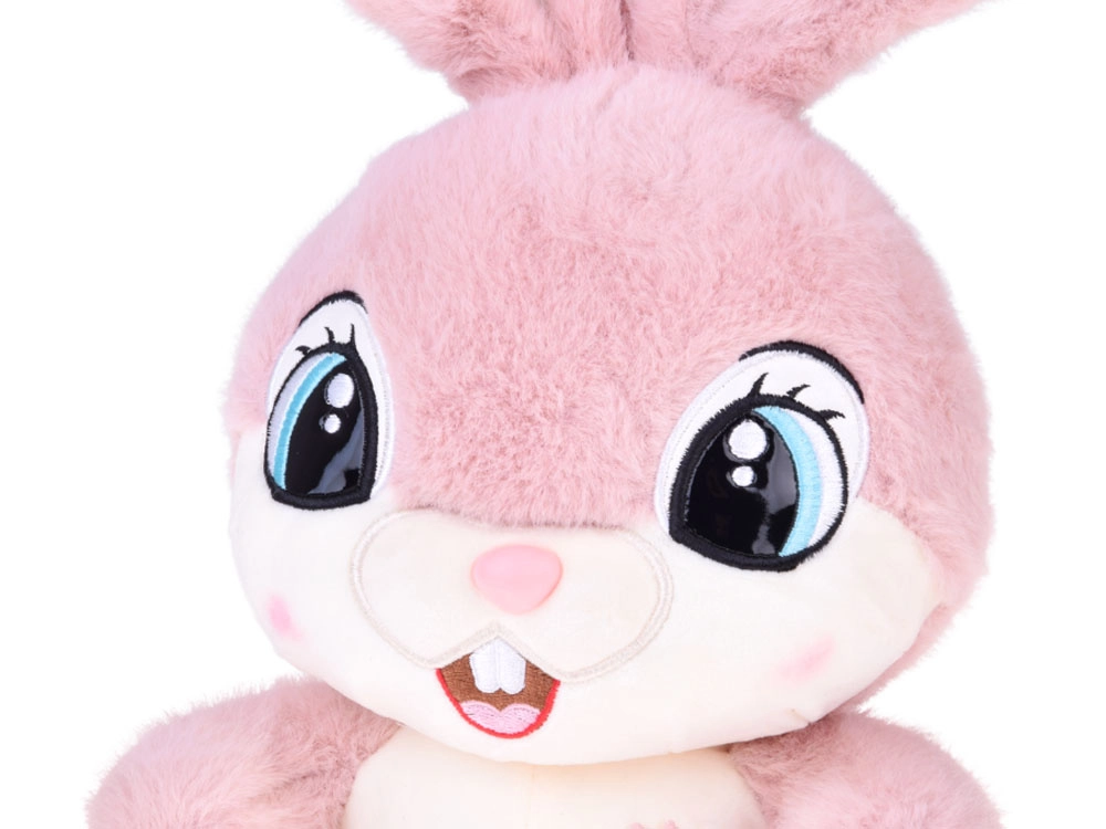 Seidig weicher Plüsch in pudrigem Rosaton mit kontrastierendem cremefarbenem Bauch lädt zum Kuscheln ein und wirkt beruhigend.