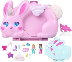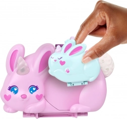 Dieses tragbare 2-in-1-Set in Form einer Hasen-Handtasche verbirgt zwei fantastische Welten – eine niedliche Hasenlandschaft und ein Märchenschloss mit Regenbogen. Kinder freuen sich auf ein interaktives Element – nach dem Drücken der Nase der Hasenmama „schaut“ sie zu ihrem Baby. Im Inneren warten 2 Mikro-Puppen, Tiere und viele kleine Zubehörteile für kreative Geschichten.