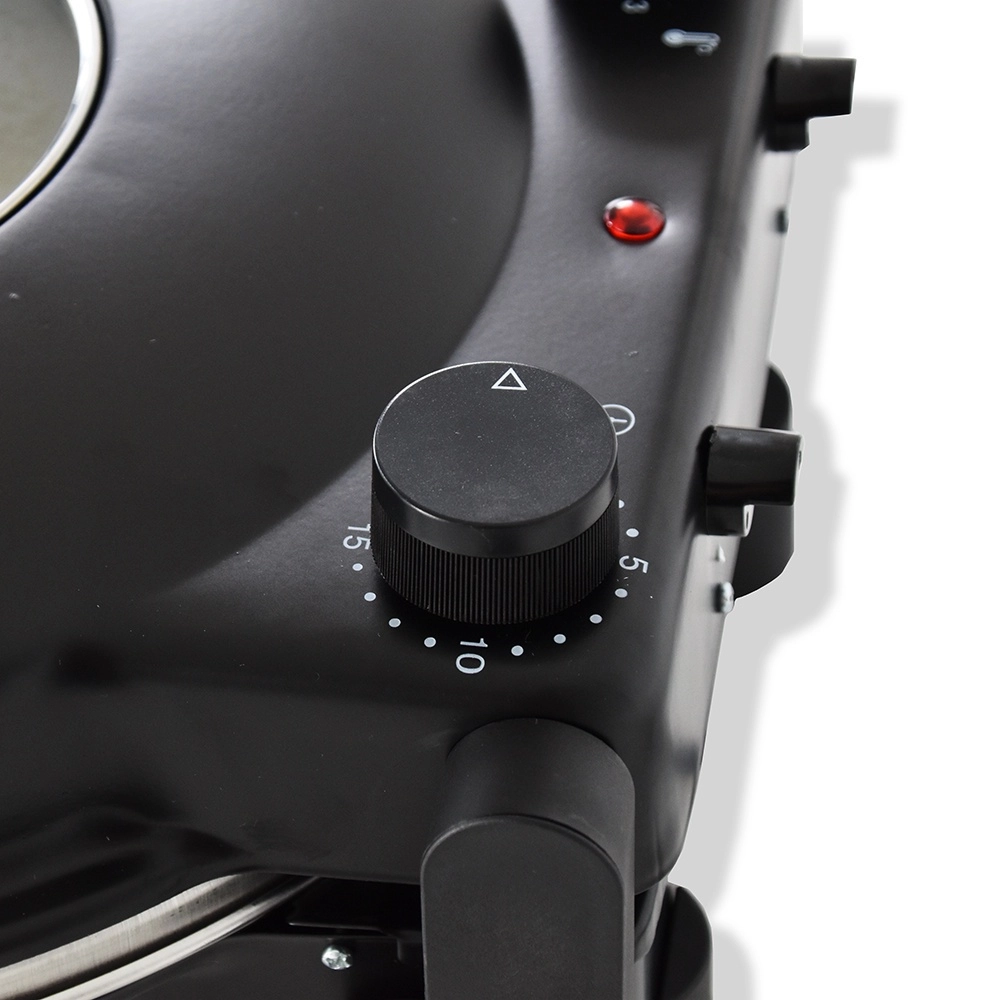 Fünf Temperaturstufen und ein integrierter 15-Minuten-Timer geben Ihnen die volle Kontrolle über den Backvorgang. Der Ofen ist ideal nicht nur für Pizza, sondern auch für Croissants, Kekse, Toast und weiteres Schnellgebäck – bei minimalem Energieverbrauch im Vergleich zum herkömmlichen Backofen.