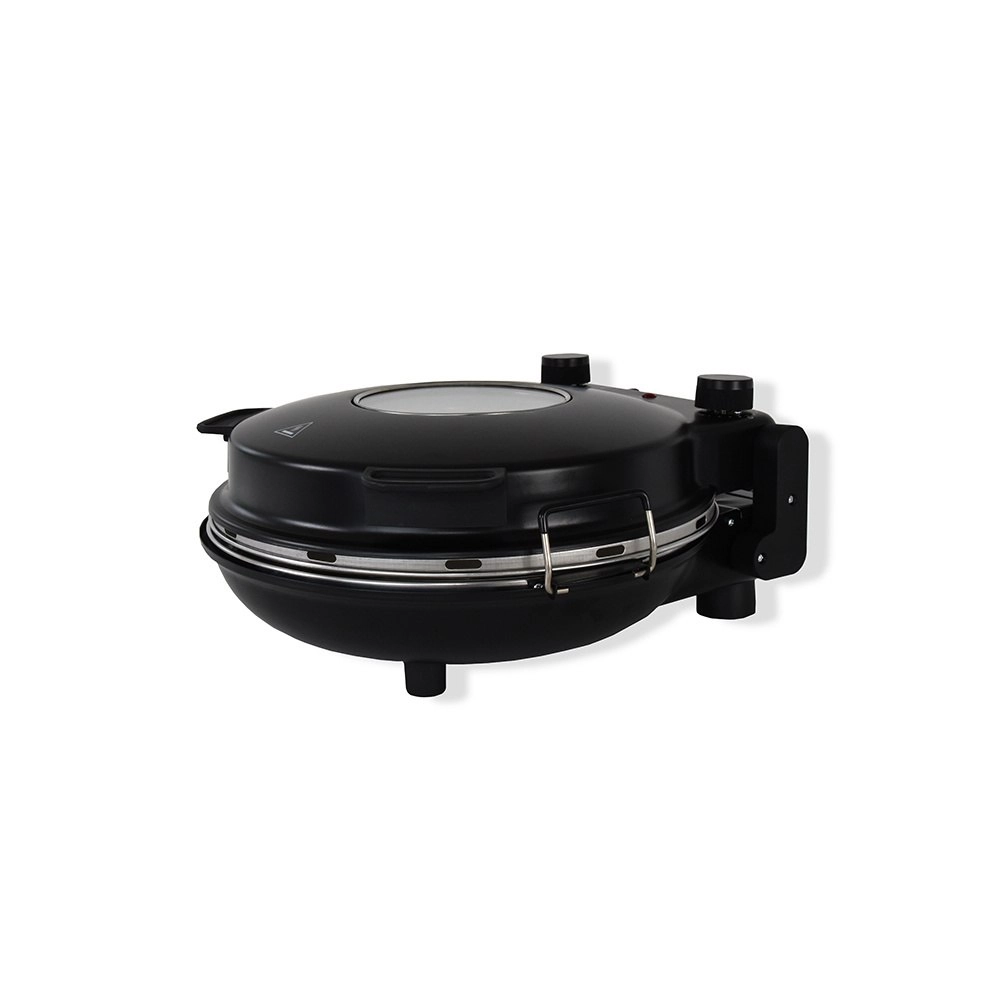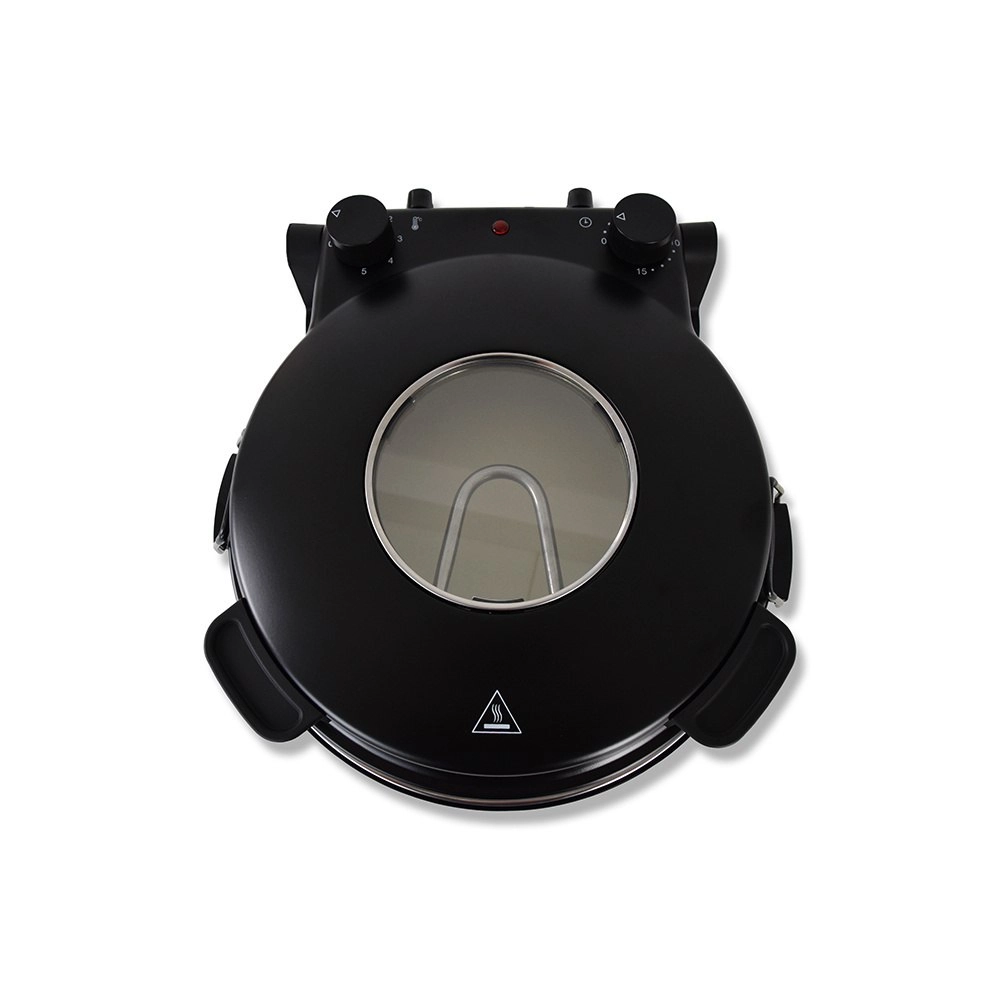 Der natürliche Backstein entzieht dem Teig Feuchtigkeit für einen knusprigen Boden. Der integrierte 15-Minuten-Timer sorgt für perfekte Ergebnisse.