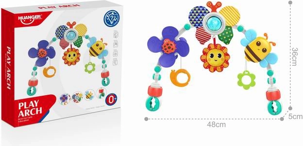 Dieser praktische Spielbogen lässt sich leicht an den meisten Kinderwagen, Babyschalen und Wippen befestigen und bietet dem Baby jederzeit Unterhaltung und Anreize. Die leichte Konstruktion mit sanften Rasselgeräuschen animiert das Kind zum Ausstrecken der Händchen und zum Greifen und unterstützt so die natürliche Entwicklung der Fein- und Grobmotorik.