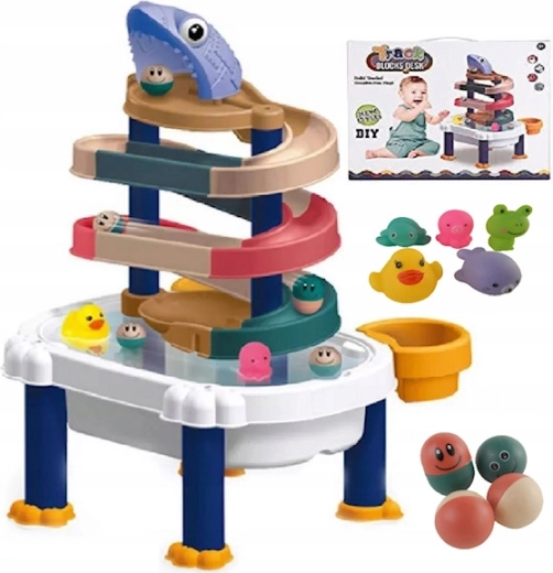 Diese farbenfrohe Kugelbahn bietet Kindern eine spannende Fahrt der Kugeln entlang der Strecke und gleichzeitig die Förderung wichtiger Fähigkeiten. Durch den stabilen Tisch mit geringer Höhe ist das Spielen sicher und bequem für kleine Kinder. Unterschiedliche Kugelformen (rund und oval) sorgen für einzigartige Bewegungen und noch mehr Spaß beim Beobachten, wie sie rollen und hinuntergleiten.