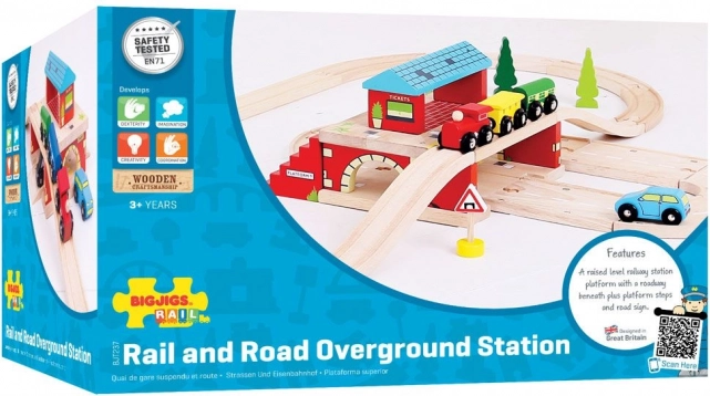 Betreten Sie die Welt der Fantasie mit dem Holzspielzeug Bahnhof Über der Straße von Bigjigs Rail, das Verkehrsspaß und großartige Interaktion der Kinder mit Eisenbahn und Straße ermöglicht.
