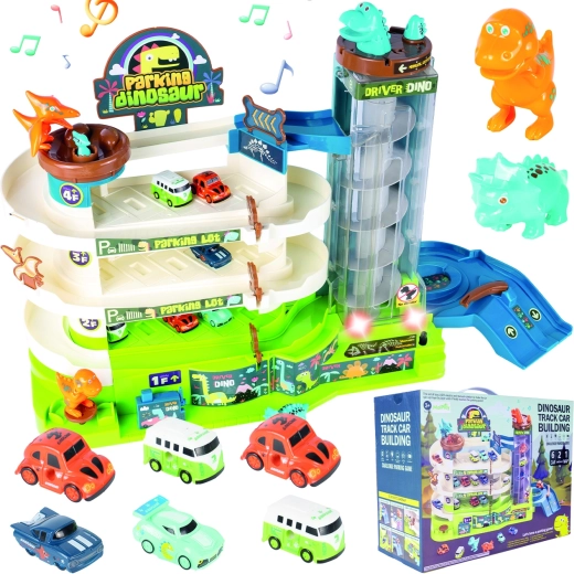 Tauchen Sie ein in die abenteuerliche Welt der Vorzeit mit diesem von Dinosauriern inspirierten Parkhaus. Dank der drei Ebenen und des verspielten Designs genießen Kinder stundenlangen Spaß, während Soundeffekte das realistische Spielerlebnis unterstützen. Das Set passt perfekt ins Kinderzimmer und ist leicht aufzubauen.