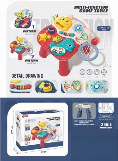 Der Lerntisch mit Basketball Dino ist eine hervorragende Wahl für erste Spiele und Lernaktivitäten. Interaktive Elemente mit Licht und Ton motivieren Kinder zum Entdecken, trainieren Fein- und Grobmotorik und fördern die Wahrnehmung von Farben, Formen und Rhythmus. Der kleine Wurfkorb animiert zu Bewegung und Spaß, was die Hand-Auge-Koordination verbessert.