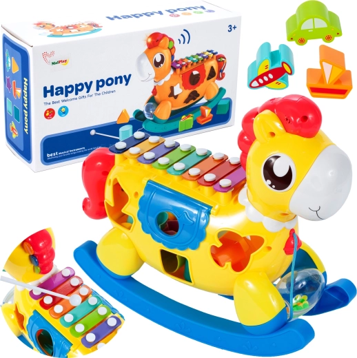 Dieses niedliche Schaukelpferd bietet Kindern viele Aktivitäten in einem Spielzeug. Dank des integrierten Sortierers trainieren Kinder ihre Feinmotorik und ihr logisches Denken, während die Becken erste musikalische Erlebnisse ermöglichen. Das Drehen des Schwanzes mit Perlen erzeugt einen anregenden Rasselklang, der Neugier und Sinneswahrnehmung weckt.