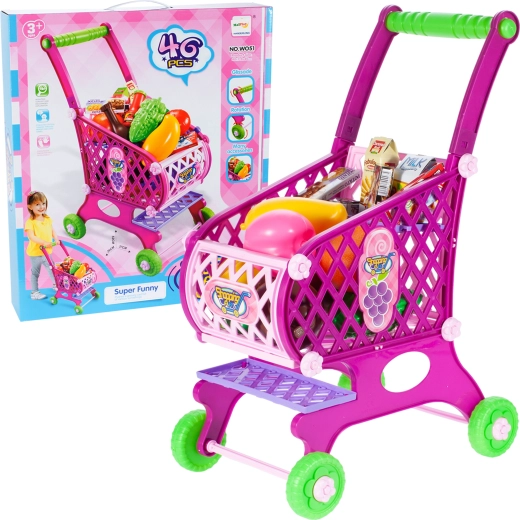Der rosafarbene Einkaufskorb ist das ideale Spielzeug für den Kaufmannsladen zu Hause oder im Kindergarten. Dank der attraktiven Farbe, des bequemen Griffs und der leichtlaufenden Räder ist die Handhabung auch für kleinere Kinder einfach. Das Set aus Spiellebensmitteln ermöglicht realistische Einkaufsszenarien und trainiert Kommunikation, Zählen und Feinmotorik.
