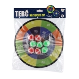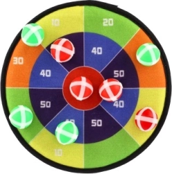 Das Spiel enthält 8 Klettbälle, die sicher an der Scheibe haften und so den Aufsichtsbedarf in Bezug auf Sicherheit minimieren. Die Scheibe ist mit einer Öse zum einfachen Aufhängen im Raum ausgestattet.