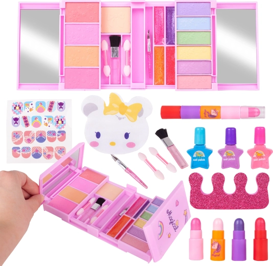 Dieses verspielte Make-up-Set „Kätzchen“ bietet alles, was Kinder für sicheres und kreatives Schminken brauchen. Die kompakte Palette lässt sich leicht aufklappen und dank der praktischen Anordnung sind alle Farben übersichtlich griffbereit. Ein tolles Geschenk für kleine Stylistinnen, die Farben und Fantasie lieben.