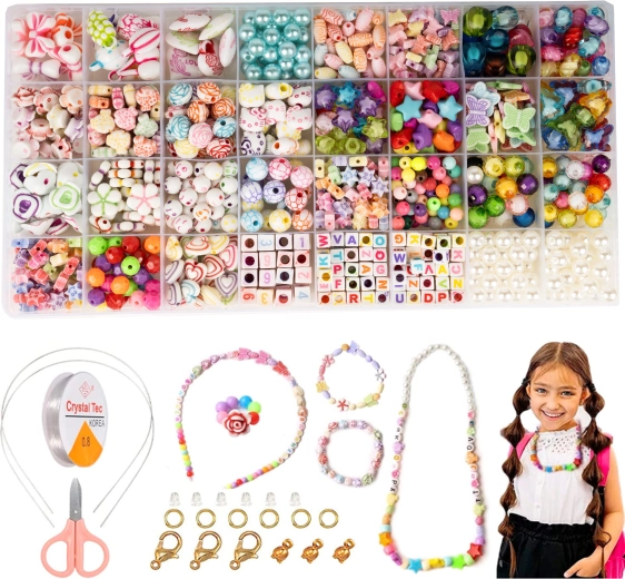 Dieses kreative Perlen-Set ist die perfekte Wahl für kleine Schmuckdesigner. Dank der großen Vielfalt an Formen und Farben können Kinder originelle Armbänder, Halsketten oder Anhänger ganz nach ihrer Fantasie gestalten. Die transparente Schnur erleichtert das Auffädeln und verleiht den fertigen Schmuckstücken ein klares, elegantes Aussehen.