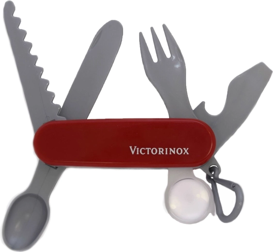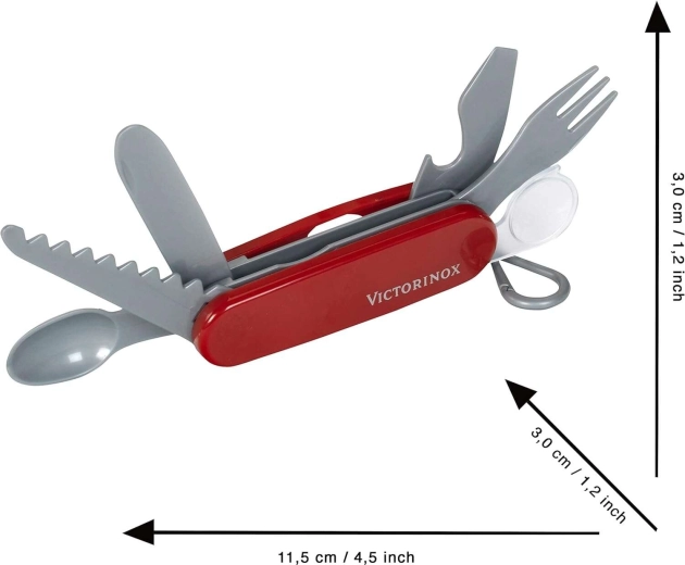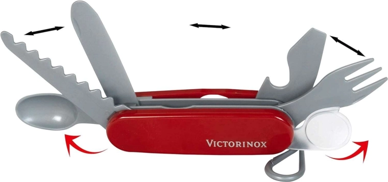 Eine originalgetreue Nachbildung des ikonischen Taschenmessers in Kindergröße motiviert zu kreativem und realistischem Spiel.
